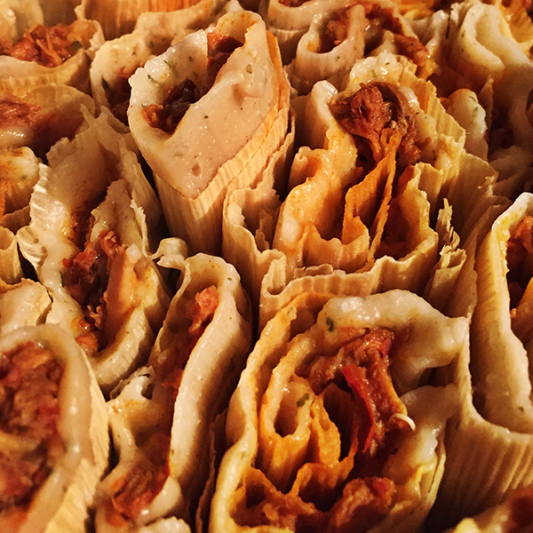 Our tamale recipe is based on a classic with a light herbed masa and rich pork filling and will yield approximately 50 finished tamales. It’s a very labor intensive culinary undertaking, but we promise, worth the work so if time is tight break the recipe down into manageable tasks by prepping meat one night, making sauce the next and then doing the assembly. Or, just gather together a group of friends or family and enjoy a festive cooking session, or “tamalada,” that will result in tasty “to go” meals for everyone.