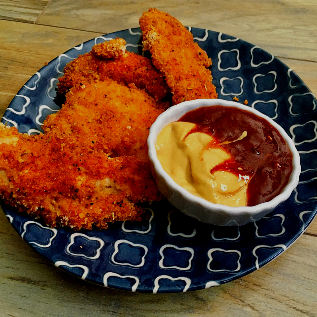 * If preparing a larger amount of chicken, you will need more of the coating mixture. Remember to remove the amount you need from the larger batch before you start handling meat using a clean, dry measuring cup. Do NOT risk food poisoning with cross contamination.