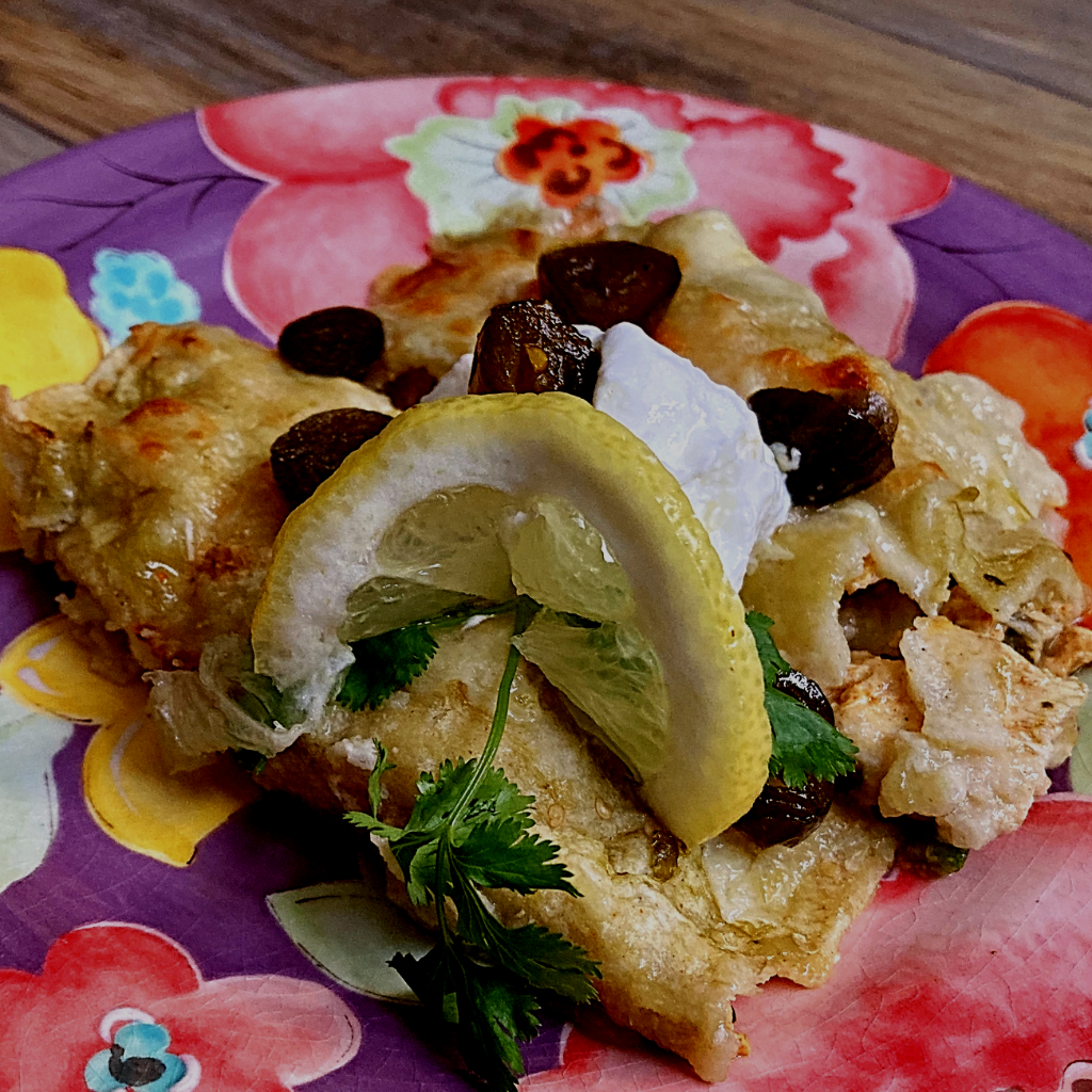 Note: If you can’t find fresh tomatillos, substitute a large can of green enchilada sauce, approximately 28 ounces. But, trust me, make the tomatillo sauce from scratch. The extra effort is worth it because the flavor is so much brighter making the enchiladas that much more divine!