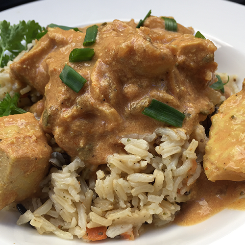 Chicken Makhani, which has its flavor origins in Northern India is not really a traditional Indian recipe but likely a dish that evolved through Indian migration to the west and uniquely concocted in small Mom and Pop restaurants. So, while it can be classified as a curry, the recipe is as original as it’s chef. One thing that is a fact though is that Butter Chicken contains NO BUTTER! Typically, it gets its richness and fat from either sour cream, or as we use, 2% Greek Yogurt, which also tames the heat of the curry. But TRUST us, one bite and your taste buds will be fooled from the super creamy flavor explosion in your mouth.